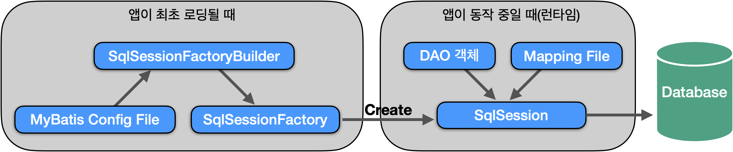 MyBatis의 주요 Component와 동작 과정을 그림으로 표현하면 다음과 같습니다.
