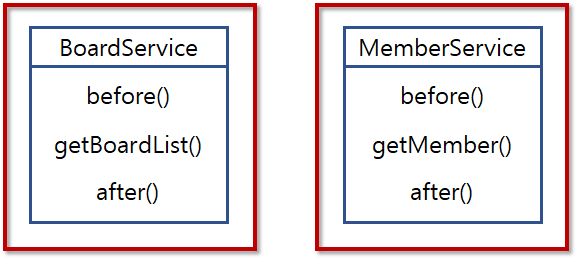 Board와 관련된 비즈니스 로직을 담당하는 BoardService와 Member와 관련된 비즈니스 로직을 담당하는 MemberService입니다.