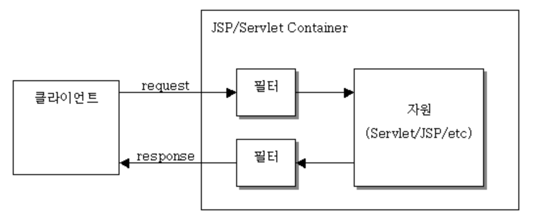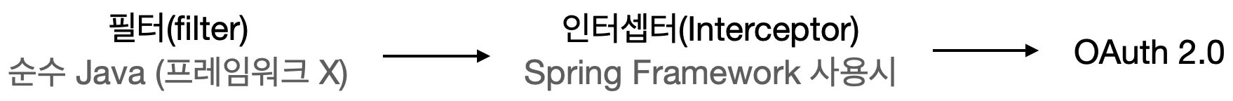 과거에는 이러한 필터를 이용해서 인증(Authentication)과 권한(Authorization)을 체크하는 용도로 많이 사용하였습니다. 그 후로는 필터 대신 Spring 프레임워크의 인터셉터를 이용하는 방식이 많이 사용되었고, 최근에는 OAuth를 이용한 방식을 많이 사용하게 되었습니다.