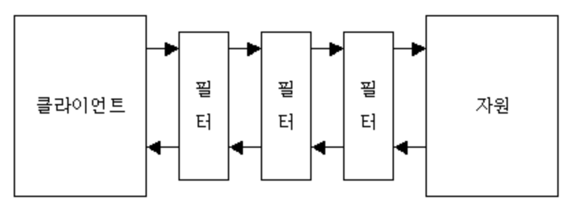 필터는 아래의 그림과 같이 여러 개를 둘 수 있는데, 이를 필터 체인이라고 부른다.