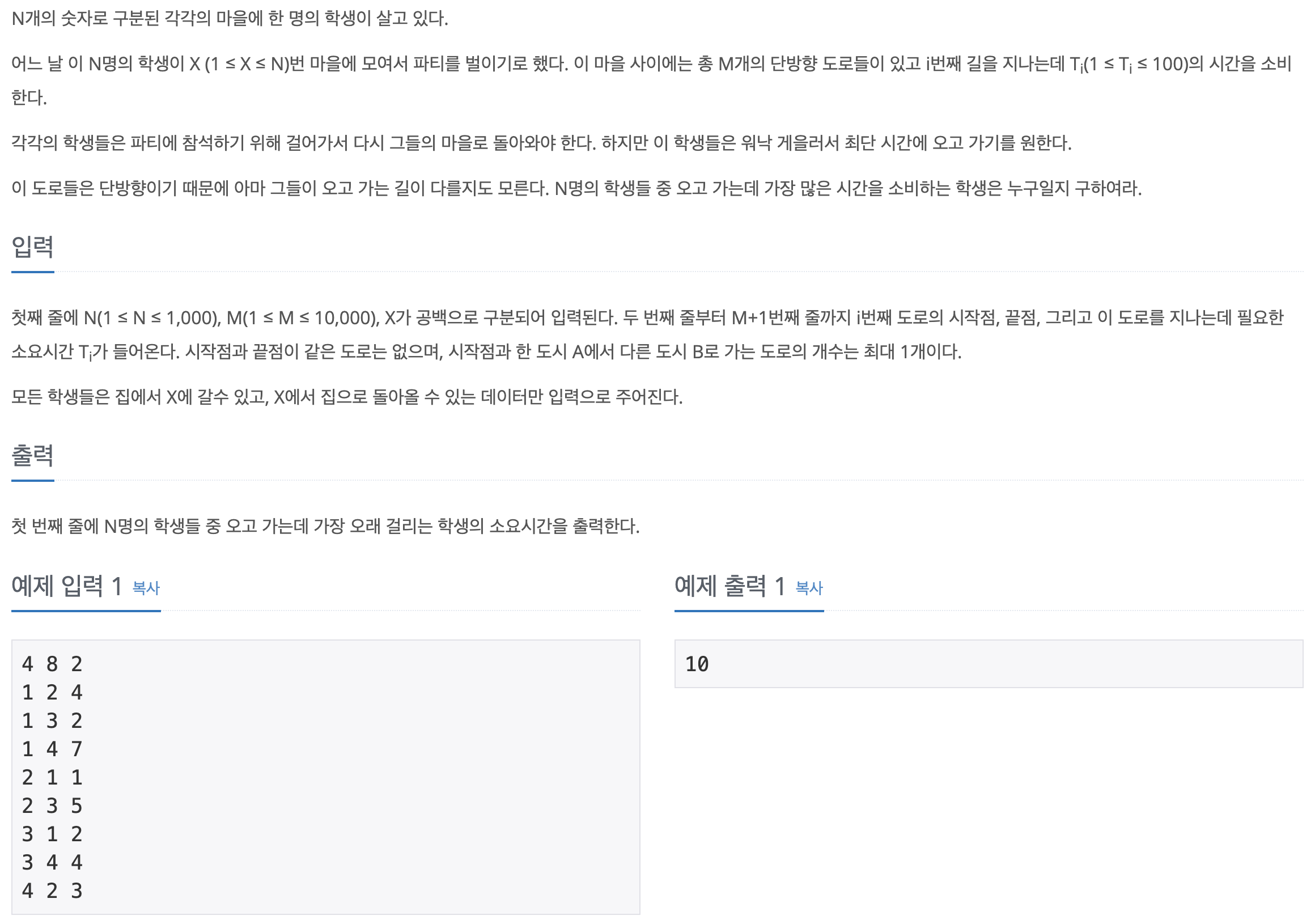 다익스트라 알고리즘의 기본 유형에 해당하는 문제이다.