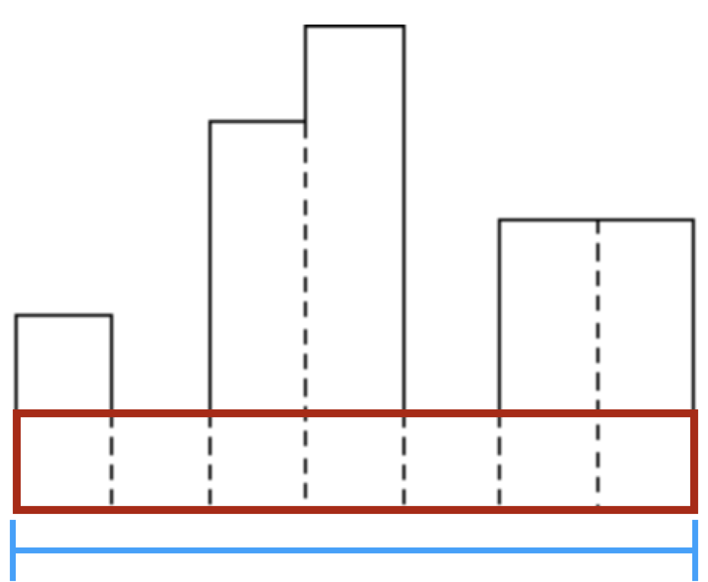 따라서, 두 번째로 생각해볼 수 있는 값은 '해당 구간에서의 최소 높이' 값이다.