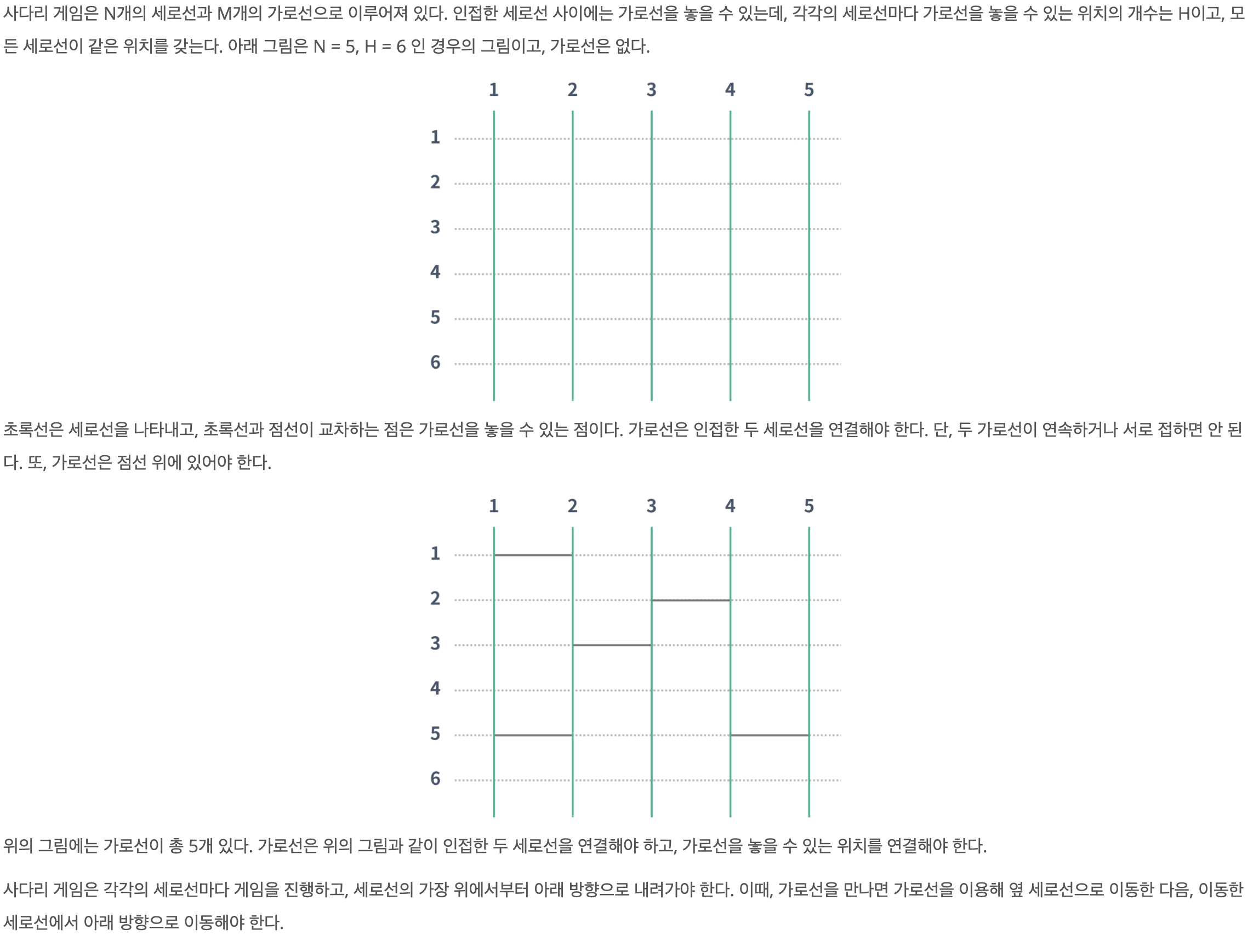 M = Integer.parseInt(st.nextToken()); // 연결된 가로선의 갯수