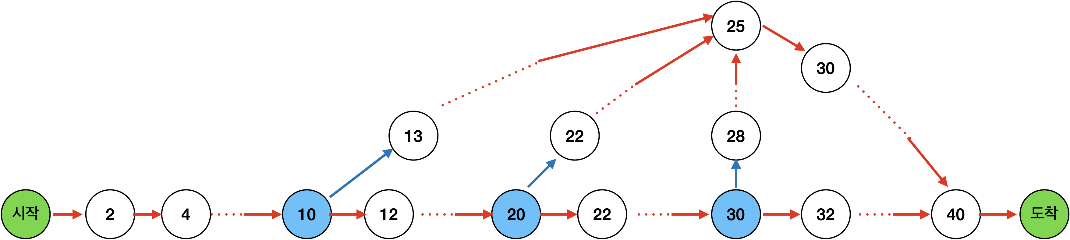 cur = cur.fastPath; // 지름길로 이동(파란색 방향)