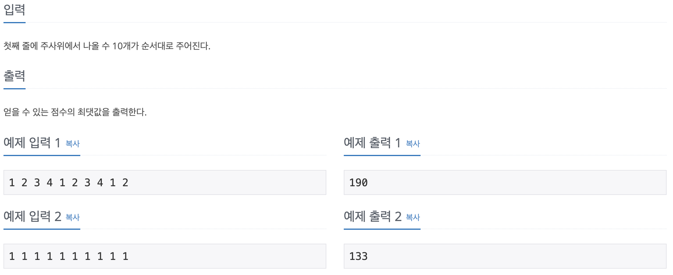 private static int[] dice, order; // 주사위, 배치순서