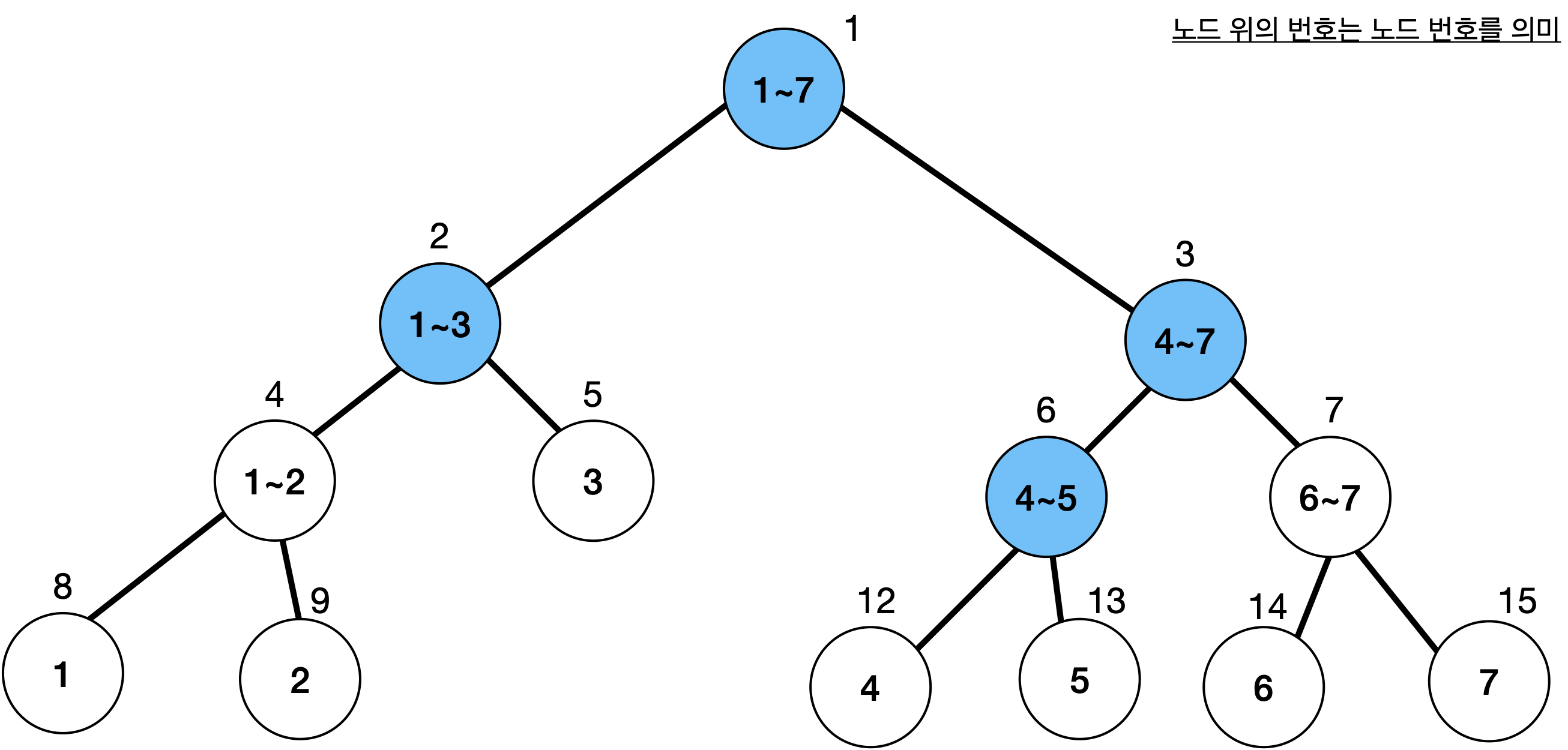 2~7 구간의 합을 찾고 싶다면 다음의 노드로 알 수 있다.