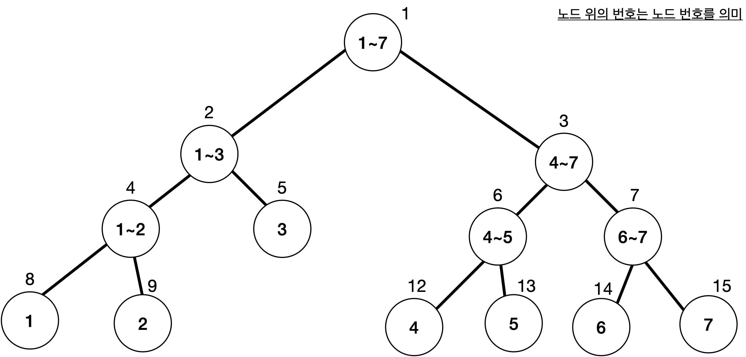 // 예를 들어, [4, 2, 7, 1, 5, 6, 3] 수열에서 현재 가리키는 값이 1일 때, 1~7 구간을 담당하는 1번 노드의 값은 3이다.