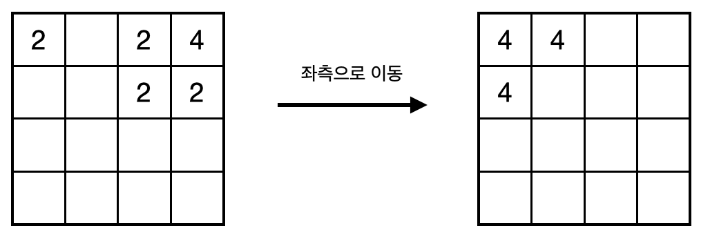 - 한 방향으로의 이동에서 각각의 블록은 한 번씩만 합쳐질 수 있다.