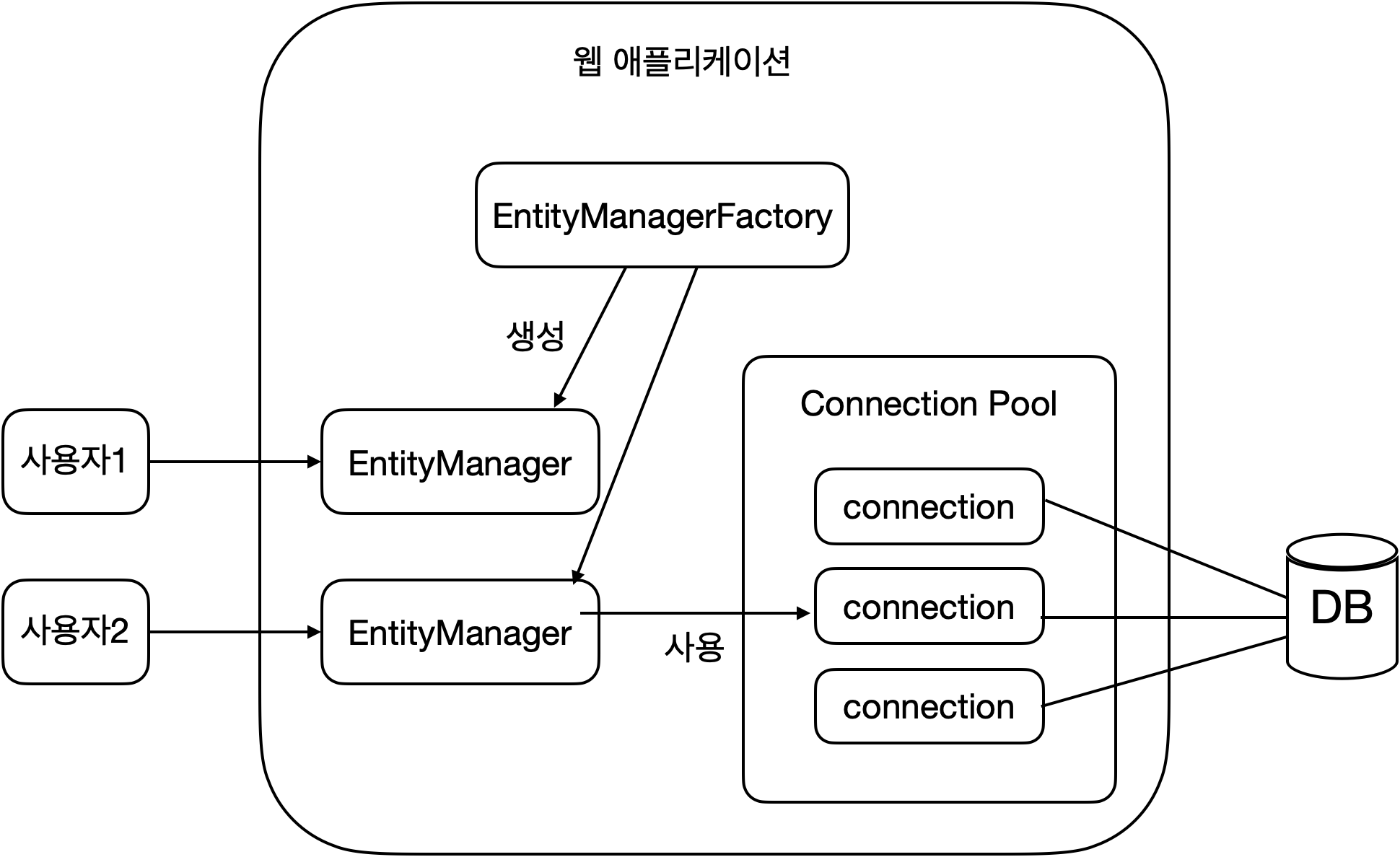 - EntityManager는 스레드 간에 공유하면 안됩니다. (사용하고 버려야 합니다.)