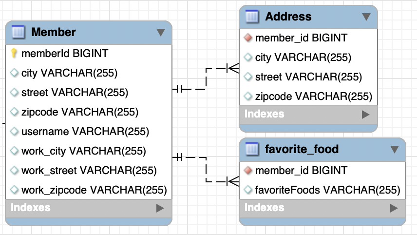 값 타입을 컬렉션의 형태로 넣으면 1:N 관계가 되기 때문에 별도로 테이블을 생성해줘야 합니다. (한 테이블에 컬렉션을 담을 순 없죠)