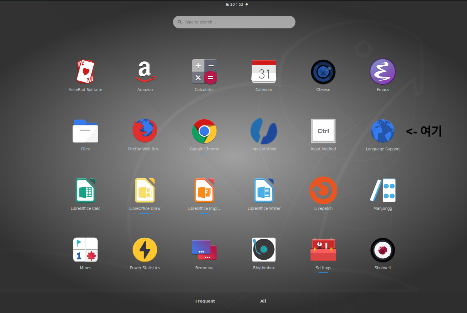 그러고나서 아래 그림에서처럼 Language Support(언어 지원) 프로그램을 실행합니다.